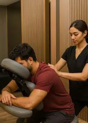 A rhythmic back, neck and shoulder massage that brings relief to muscular aches and pains. This destress back Massage helps to reduce and relieve the feeling of stress. Stress can be related to emotional or physical demands. Massage can be used at any time to relax the body. Massage is an effective treatment to decrease other emotions related to stress such as, anxiety and depression.